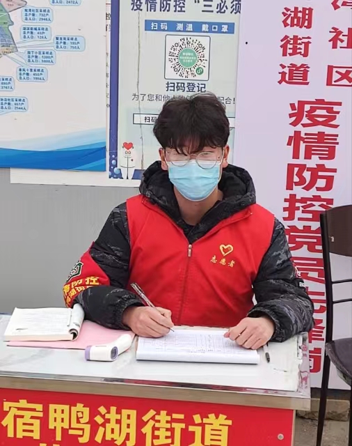 志愿感悟:“在这次防疫工作中,我深刻感受到了保持良好团体关系的重要性。面对严峻的疫情,基层干部分工明确,人人都有舍身忘我的精神,并在防疫抗疫的严峻斗争中经受住了考验。作为一名大学生,要始终保持新时代青年敢于斗争的自觉和胆魄,挺身而出,冲锋在前,携手并战胜疫情。”