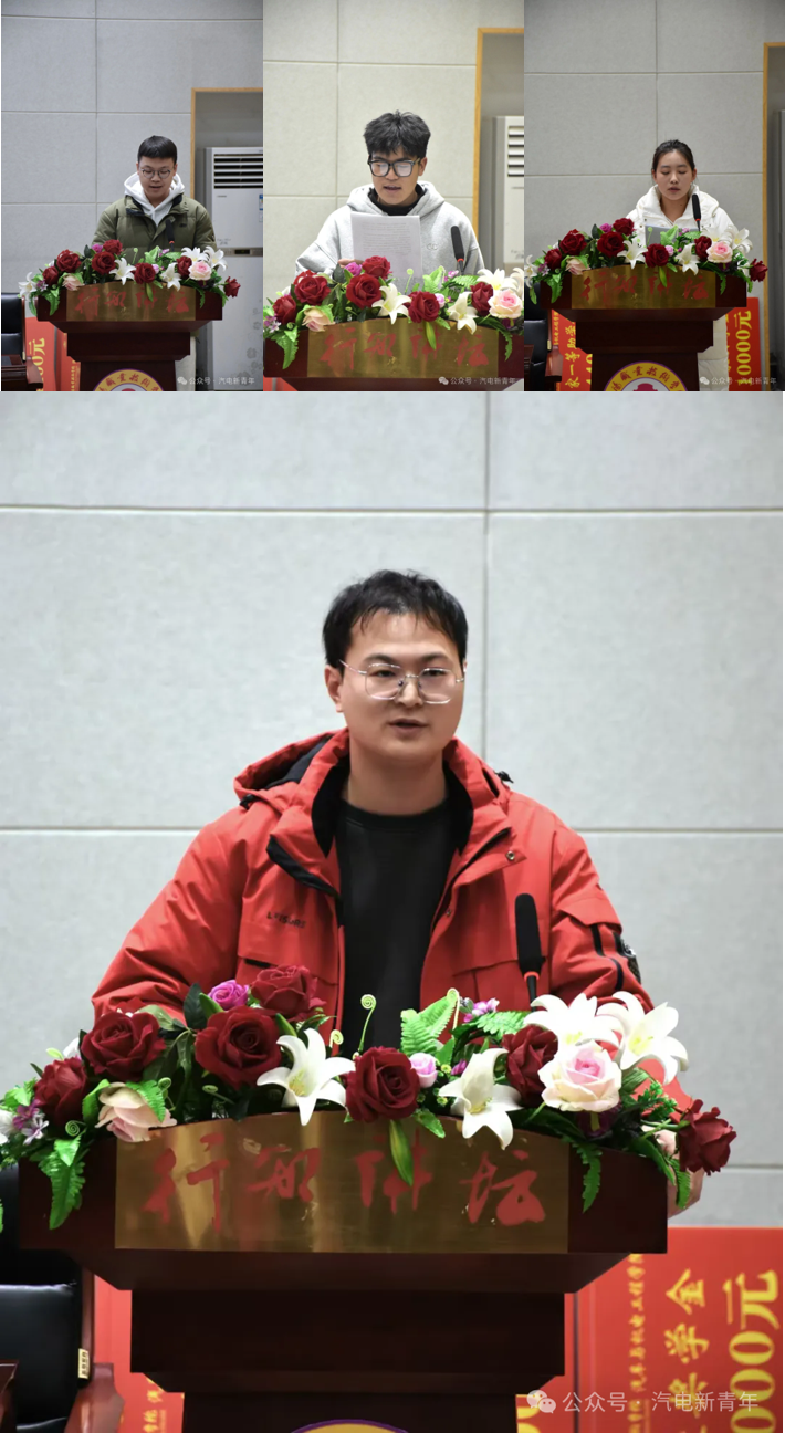 国家奖学金获得者杨旭柯、国家励志奖学金获得者袁浩博、国家助学金获得者张玉琪分别上台发言,他们表示国家奖助学金不仅是一项荣誉,更是一份责任。他们鼓励同学们,心怀感恩,砥砺前行,用实际行动回报国家、学校和老师们,去书写属于自己的青春篇章!