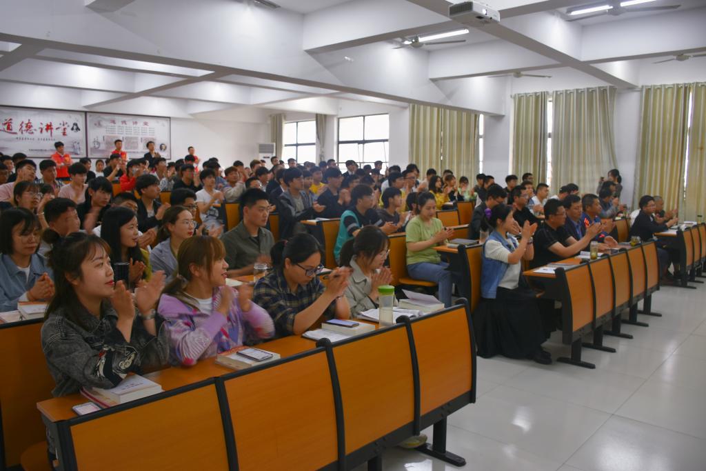 5月11日下午,立博_立博·官方(中国)在道德讲堂举办了党史学习教育专题讲座。学校马克思主义学院青年教师陈思为师生代表作了一场题为《习近平总书记关于坚持“一国两制”和推进祖国统一重要论述》的报告。党总支书记代翔、副院长岳杰、冷靖、郑荻、学管秘书李竹婷、全体教职工党员及二百余名学生代表聆听了报告,讲座由办公室主任张礼涛主持。